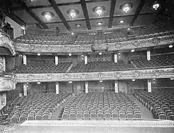 Cohan considered the theatre to be a celebration of his career, with exhibits and murals of his work on display. 1911's The Little Millionaire was the first hit of the theatre. Potash and Perlmutter (1913) was a very big hit. In 1915, Cohan and his partner Sam H. Harris sold the theatre to Joe Leblang, a big discount ticket seller. Leblang had A. L. Erlanger manage the theatre.[5] The theatre started also showing motion pictures by the early 1920s on the weekend, eventually making more money through that source than plays. The 1925 film version of Ben Hur had a long run. By 1933, the theatre stopped showing live theatre altogether, the Great Depression affecting Broadway significantly. The entire Fitzgerald Building and the theatre in which it was housed was demolished in late 1938.[6] It is currently the site of 4 Times Square.
