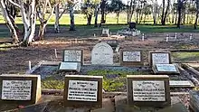 He died at "Retreat" on 31 August 1948 and his remains were buried at the Cootamundra Cemetery.[8] He was survived by his wife Mary, sons George and Hugh, and daughters Molly and Agnes "Toots" Main, and Jean Caldwell. His estate was valued at £32,036 for probate purposes.[9]
