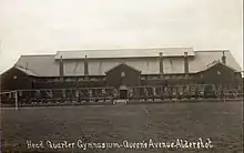 Colonel George Malcolm Fox was knighted in 1910.[16] After a series of strokes Fox died at his home, Rustington House near Littlehampton in March 1918.[14] In his will he left an estate valued at £31,244 12s 5d.[17] The Headquarters Gymnasium in Aldershot built by him in 1894 was renamed the Fox Gymnasium in his honour in the 1940s[18] and remains the main training gymnasium of the Royal Army Physical Training Corps (RAPT).[19] Fox Lines, where today the RAPT complex is located, was also named in his memory in 1994.[20]