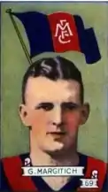 Originally from South Australian National Football League (SANFL) club South Adelaide, Margitich debuted for Melbourne in 1930 and kicked 73 goals, a then club record for most goals in a season. He topped their goalkicking again in 1931 and 1932 and managed 10 goals in a game three times in his career. The most he kicked was 12 against North Melbourne in 1931.