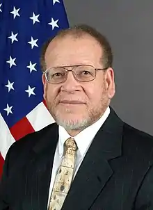 George McDade Staples (born December 7, 1947 Knoxville, Tennessee) was an American Career Foreign Service Officer who served as Ambassador Extraordinary and Plenipotentiary to Rwanda (1999-2001), concurrent appointments as Ambassador to Cameroon and Equatorial Guinea (2001-2004) and Director General of the Foreign Service (May 25, 2006-June 27, 2007),[1] Director of the Bureau of Human Resources at the U.S. Department of State and Political Advisor to the Supreme Allied Commander Europe (SACEUR) at NATO in Belgium. He now holds the rank of largely ceremonial rank of Career Minister.[2]