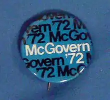 The George McGovern 1972 presidential campaign began when United States Senator George McGovern from South Dakota launched his second candidacy for the Presidency of the United States in an ultimately unsuccessful bid to win the 1972 presidential election against incumbent president Richard Nixon, winning only in the District of Columbia and the state of Massachusetts. McGovern vied to become the first South Dakota native to become president.[2]