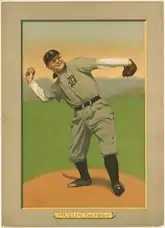 Mullin was also known for the tactics he used to try to keep batters off balance. The tactics included talking to batters when they came to bat, or even talking to himself.[37] Longtime Detroit sports writer H. G. Salsinger wrote that, while Mullin had an excellent fastball and a good curveball, "most of his success was due to smartness rather than stuff."[38] According to Salsinger, Mullin would try to distract batters with antics in between pitches – combing the pitcher's box, adjusting his belt, cleaning non-existent dirt from his glove, tying or removing his shoes –all in the hope of upsetting the batter and inducing him to swing at a bad pitch.[38] On another occasion, Mullin and catcher Boss Schmidt hatched a successful scheme to induce Jack Chesbro to try to score from third base by bouncing a wild pitch off the stands so that it rebounded to Schmidt who then threw to Mullin for the tag on Chesbro.[38]