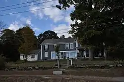 The George Pickering Nichols House is located in central southern Thompson, on the north side of Thompson Road (Connecticut Route 193) a few hundred feet west of where it passes under Interstate 395. It is a 2+1⁄2-story wood-frame structure, three bays wide, with a front gable roof and a single-story hip-roofed front porch extending across the front. A long two-story wing extends to the west (left) of the main block. The corners of the building are pilasters, supporting a frieze and entablature at the cornice. A polygonal bay, added c. 1880, projects from the east side of the main block, and is decorated with brackets. The interior retains a number of original features, including wide pine floors and horsehair plaster walls.[2]