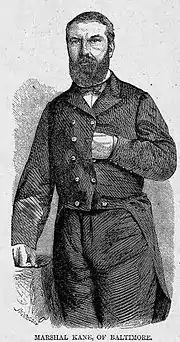 George Proctor Kane (August 4, 1817 – June 23, 1878)[1] was an American politician and policeman. He is best known for his role as Marshal of Police during the Baltimore riot of 1861[2] and his subsequent imprisonment at Fort McHenry and Fort Warren without the benefit of habeas corpus. His position as Marshal of Police and his southern sympathies were two of many factors in Abraham Lincoln's decision in February 1861 to pass through Baltimore surreptitiously on his way to Washington to be inaugurated, in order to avoid a possible assassination attempt. Despite his politics, Kane was instrumental in providing protection and an escort for Mary Todd Lincoln on her arrival in Baltimore in February 1861 on her way to the inauguration of her husband, who had preceded her.