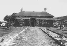 Daniel Rowntree Somerset, Registrar of Pensions, leased Portions 164, 165 & 381, which included St John's Wood (known now as Granite House from the materials used in its construction) to George Rogers Harding in May 1868. Harding proceeded to purchase the property by 27 January 1874.[14] He developed the 75 acres (30 ha) stretching back to Taylor Range, across to Bailey's quarry and Trouton's old residence at Ashgrove to Sir Charles Lilley's quarry and the Glenlyon Estate.[15] He extended the house, adding a ballroom by infilling the space between the two wings,[16] constructed a separate adjacent building consisting mostly of bedrooms, stables were added, quarters for men and maids and a fruit grove established.[note 1] The original property comprised a drawing room, dining room, large hall, smaller hall, library, "best" bedroom, dressing room, bachelor's room, seven other bedrooms, pantry, lumber room, two servants' rooms, kitchen, laundry and stables.[17] Some of these rooms would have been in an adjacent building known as the "Cedar House". It was moved in 1926 to an adjacent site and shortly afterwards accidentally burnt down.[18]