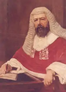 He had become the first equity counsel in the colony upon his arrival in 1866 and built up a very large and profitable practice. By 15 July 1879, when he was only forty one years old, he was the senior Puisne Judge of the Supreme Court.[23] He was considered a fair and conscientious man and these qualities lead to him being appointed as Acting Chief Justice in the absence of Sir Charles Lilley from 1883 to 1884.[23] His appointment to the Bench was seen as non-political, "It is not a political appointment in any sense, and that is one fact which entitles it to public approval. Mr. Harding's legal qualifications rank high and socially his standing is unimpeachable."[24]