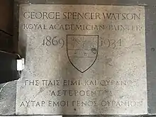 George Spencer Watson R.O.I., R.P., A.R.A., R.A. (8 March 1869, in London – 11 April 1934, in London) was an English portrait artist of the late romantic school who sometimes worked in the style of the Italian Renaissance.
