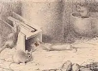 Born on 11 February 1846, the second child and first son of George and Anne Rope of Blaxhall and Orford, Suffolk, George Thomas Rope was considered to be of weak health. As a result, in his adult life he was able to leave the more robust careers of doctor, farmer and architect to his younger brothers while he pursued the development of his skills as a graphic artist and naturalist. Before his brother Arthur's marriage, he had assisted with the accounts and other paperwork at the former's farm but then turned to devote himself entirely to his artistic career, taking tuition from a London artist, William Webb. His first work to be displayed at the Royal Academy (in 1877) was an oil painting entitled Field Mice, which sold for 25 guineas, a substantial price for an unknown emerging artist. From 1875 onwards, he exhibited at the Ipswich Fine Art Club virtually every year until 1915 inclusive[1] After that date, he ceased exhibiting but published a collection of his nature writings collected under the title of "Country Sights and Sounds" in 1915.[2] He continued submitting articles on Natural History and another of his areas of interest, the Suffolk dialect, until his last years. Despite the diagnosis of weak health, he lived to the age of 83 and only died in 1929 as the result of an accident while out driving a pony and trap.[3]