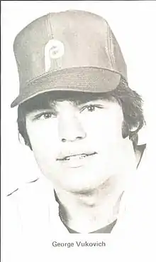George Stephen Vukovich (born June 24, 1956) is a former right fielder in Major League Baseball who played for the Philadelphia Phillies and Cleveland Indians in all or part of six seasons from 1980–1985. Listed at 6' 0" (1.83 m), 198 lb. (90 kg), Vukovich batted left handed and threw right handed. He was born in Chicago.