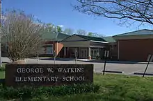 George W. Watkins Elementary School is an elementary school located in Quinton, Virginia, and is one of two such schools in New Kent County. As a formerly African American-only high school, it, along with the nearby New Kent High School is a National Historic Landmark[2][4] and is associated with the Supreme Court case Green v. County School Board of New Kent County. Like the other public schools in New Kent, Watkins is located on Route 249 (New Kent Highway), though it is about seven miles west of the others.