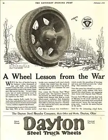 - Dayton Steel Foundry Co (1919). The ultimate motor truck wheel. Dayton Ohio: University of California Engineering Library. p. 11. Retrieved 26 May 2015.