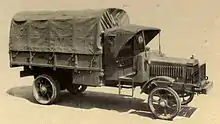 The Standard B "Liberty" Truck was a United States Army vehicle used in World War I. The Liberty Truck was designed by the Motor Transport section of the Quartermaster Corps in cooperation with the members of the Society of Automotive Engineers. Production of the 3–5 ton truck began in 1917, and the first models appeared ten weeks after the design was standardized. Of the almost 9,500 produced by 15 manufacturers, more than 7,500 were sent overseas. The specs for the wheels for the Liberty Truck were identical to the Dayton Steel Wheel.