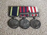 In 1857 the Victoria Cross was only awarded to living recipients. The survivors of this action were thus honoured, Raynor, Buckley and Forrest; Willoughby did not receive the Victoria Cross because of his death a day later at the hand of villagers. In recognition of his gallantry Susan Willoughby was awarded a Civil List pension of £150 per annum for the rest of her life.[6]