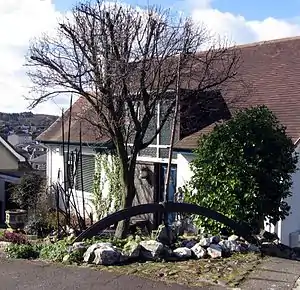 George Wyllie was commissioned in the 1970s to build some French influenced sculptures including General Charles de Gaulle, one of the Eiffel Tower and smaller mustachioed & beret wearing French visages (used as coat hooks) that were dotted around the city's first wine bar, "La Bonne Auberge", in its original site (the basement of the now defunct Beacons Hotel at 7 Park Terrace).