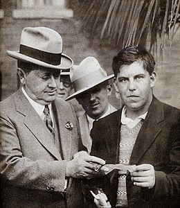 ![]() William Wrigley Jr. with George Young (right) after the 1927 Wrigley Ocean Marathon Swim | |