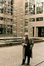 In 1997 Zongolopoulos created Tel - Néant, an artwork made by stainless steel and plexiglas[20] presented in that year's Venice Biennale and in 1999 exhibitions held in Berlin (Wittenbergplatz) and Weimar.[3] Nowadays the sculpture is placed at OTE headquarters in Athens.[21] In 1998, Zongolopoulos created another sculpture from stainless steel under the name Composition of Circles[22] or Olympic Circles[5] as a reference to the Olympic rings while the following year he created Column, a 21 m. high artwork presented at 1999 Venice Biennale and placed later near Evangelismos metro station, Athens.[5] In 2001 Zongolopoulos made his last artwork, a stainless steel sculpture known as Irana[5] (a name taken by its creator from the Dorian Greek form of the name Irene).