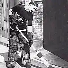 One of the dominant goaltenders in the NHA and early NHL, Vézina led the Canadiens to five Stanley Cup Finals appearances, where they won the title twice.[27] Seven times in his career, Vézina had the lowest goals-against average in the league he played, and he had the second-best average another five times.[28] From when he joined the Canadiens in 1910, until being forced to retire in 1925, Vézina never missed a game nor allowed a substitute, playing in 328 consecutive regular season games and an additional 39 playoff games.[9][29] For the first several years of his career goaltenders could not leave their feet to make a save, and while this rule was changed in 1918 Vézina continued to play in this conservative style throughout his career.[30][31] Even so, Vézina is regarded as one of the greatest goaltenders in the early days of hockey;[32] the Montreal Standard referred to him as the "greatest goaltender of the last two decades" in their obituary.[33]
