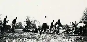 The Georgia Bulldogs won the SIAA championship in the prior year of 1920. The toughest Southern opponent left for either school, both with undefeated conference records, the Georgia-Vanderbilt game would decide the SIAA title. Georgia was the favorite to win this first meeting of the two schools since 1912, in part because the Bulldogs may have outplayed Harvard and defeated Auburn earlier in 1921.[5] Georgia had the greatest line in the South,[6] featuring four All-Southern linemen by the names of Puss Whelchel, Bum Day, Owen Reynolds, and Artie Pew.[7] Not one team all year scored on Georgia through its line.[8][9] Vanderbilt at this point was 6-1 against Georgia all time, the score all time was 184 to 4 in the Commodores' favor.[10]