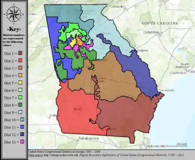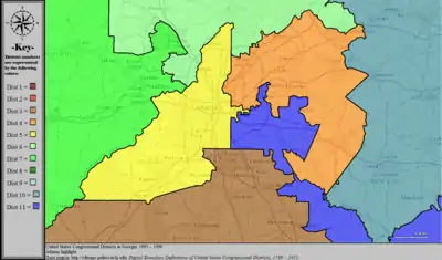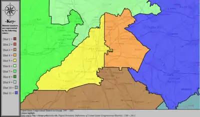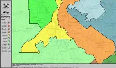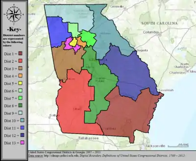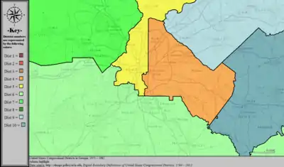 Table of United States congressional district boundary maps in the State of Georgia, presented chronologically.[4] All redistricting events that took place in Georgia between 1973 and 2013 are shown.