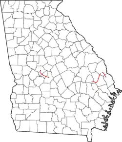 Initially the Georgia Midland operated three branch lines, all within Georgia, connecting Roberta through Fort Valley to Perry, Dover through Statesboro to Metter, and Ardmore to Sylvania.[7] Subsequently the Ardmore-Sylvania line was returned to Ogeechee Railroad, which now operates it.