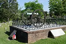 During the Civil War, superintendent Francis W. Capers sent cadets to use as drill instructors for CSA, and other cadets volunteered or were drafted.[2] On May 14, 1864, GMI cadets fought in the Battle of Resaca and made contact with the 9th Illinois Mounted Infantry regiment.[3] After this single engagement, the cadets were pulled off the front line.[4]