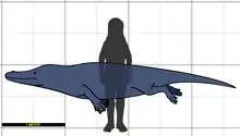 Georgiacetus is an extinct protocetid (early whale) which lived about 40 million years ago and hunted the rich, Suwannee Current powered coastal sea which once covered the Southeastern United States. This was during the earliest Bartonian Stage of the Eocene Epoch (40.5 to 37.2 million years ago). Current research puts Georgiacetus as the link between the protocetids and modern whales,[3] making the Georgia whale a scientifically important ancestor to all modern whales. An articulated and completed cast of the find is currently on display at the Georgia Southern University Museum in Statesboro, Georgia; Georgia Southern University also houses the actual 1983 Georgiacetus fossils and has the animal’s fossilized hip bones on display.