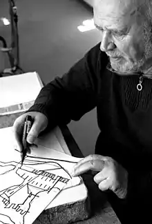 Gaga (Georgy Vasilyevich) Kovenchuk (Russian: Гага (Георгий Васильевич) Ковенчук; 2 December 1933 — 3 February 2015). Soviet and Russian artist and writer. Gaga was an artist, painter, graphic artist, book artist and poster artist, printmaker (etching, aquatint, lithography, linocut, woodcut, monotype, silkscreen, stencil), engaged in ceramics. Honored artist of Russia, member of the graphics section of the Saint Petersburg Union of Artists, member of the Union of journalists. Member of the creative Association of poster artists "Боевой карандаш" (Battle pencil).[1]