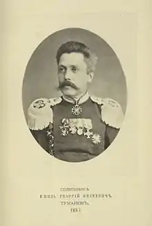 Georgy Tumanov (Russian: Туманов, Георгий Евсеевич, Georgian: გიორგი თუმანიშვილი (Giorgi Tumanishvili), Armenian: Գեորգի Թումանով) (16 March 1839 – 30 May 1901) was member of the Georgian-Armenian royal house of Tumanishvili. He served as General of the Infantry as well as theorist and practitioner of military engineering in the Russian Empire. Tumanov was one of the most important specialists in that area at the time. He wrote numerous manuals for pioneer units on how to properly construct fortifications and other relevant military infrastructure.