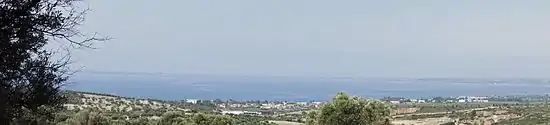 The climate is Mediterranean and temperate[8][9] throughout the year with mild winters (very rarely below 0 °C), serene sky for most part of the year,[10][11] which contributes considerably to the growing of olives[12][13] in the area, also allowing shepherds from other regions, especially in the past, to winter their flocks of sheep and goats and other animals there. Average temperature ranges from 10 degrees °C. in winter to 35 degrees °C. in summer (Jul Aug).[14][15][16][17]