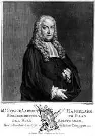 Gerard Arnout Hasselaer (20 February 1698, Amsterdam - 12 July 1766, Heemstede) was a burgomaster and counsellor of the city of Amsterdam, and a Director of the Dutch East India Company.[1]