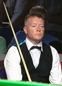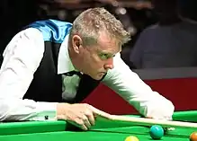 Greene got off to a slow start in the 2014–15 season by failing to qualify for the first four ranking events.[22] He won his first match in a ranking event at the UK Championship defeating Vinnie Calabrese 6–2. Greene made a break of 139 in his second round match against Matthew Stevens but lost 6–3.[23] Greene won his first qualifying match for the German Masters but then lost in the final qualifying round to Li Hang.[24] At the Welsh Open, Greene won his first match defeating Daniel Wells, but then suffered a whitewash at the hands of in form Liang Wenbo in the second round.[25] Greene enjoyed his best run of the season in a ranking event at the Indian Open in reaching the Last 32. He defeated Ahmed Saif 4–0 in qualifying, and at the venue defeated Matthew Stevens 4–2, but was then edged out in the last 32 by Jamie Jones 4–3.[26] Greene beat the in form Chris Wakelin 5–1 to qualify for the China Open, but was then beaten 5–2 by practice partner Barry Hawkins at the main venue.[27] Greene participated in all 6 of the Players Tour Championship events, with his best performance a run to the last 32, defeating Neil Robertson along the way.[28] He lost his first match only once in these events, but was only able to advance beyond the last 64 on one occasion, to finish 56th in the order of merit.[29] At the World Championship, Greene beat Elliot Slessor 10–4 in the first qualifying round, but lost in the second qualifying round 10–6 to Mitchell Mann.[30] Greene finished the season ranked in 40th place, from a position of 44 at the start of the season.[31]