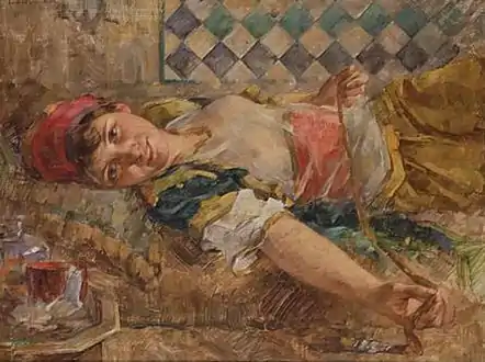 At this time, he created mostly watercolors of city scenes with figures. Later, he made several long trips; to Spain (1900), Italy (1913) and Morocco (1920).[2] His work gradually came to show an obvious southern influence and many had Orientalist features.
