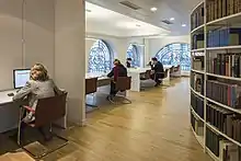 In addition to the freely accessible library and its reading room, the now modern interiors feature a conference room in the basement, a meeting room with videoconferencing capabilities, a research studio for grant recipients, and offices for the DFK Paris team and third-party funded research projects.