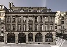 Hôtel Lully, the building housing the German Center for Art History, is located in the first arrondissement of Paris. Built in the seventeenth century, the Hôtel Lully owes its construction to Jean-Baptiste Lully, an Italian-born French composer who became the court composer for Louis XIV. According to a local legend, Lully received 11,000 livres from Molière to help purchase the land and construct the building.[6] The decorative splendor dating from the reign of the Sun King remains visible in the façade, embellished with Bacchanalian masks—a registered historic monument—a bas-relief depicting musical symbols, and the ceiling paintings in the drawing room.