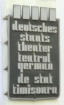 The German State Theatre Timișoara (GSTT) is a publicly funded German-speaking professional theatrical company in Timișoara (German Temeswar), the capital city of Timiș County in western Romania, where German-speaking theatre was first mentioned in 1753. The new theatre was opened in 1875, but closed in 1899 due to the increasing magyarisation in the Kingdom of Hungary. The ceremonial reopening of the German State Theatre Timișoara (GSTT) took place on 27 June 1953. The German State Theatre is located in the right wing of the National Theatre and Opera House with entrance from Strada Alba Iulia. It has a performance hall with 100 seats, which it shares with the Hungarian State Theatre.