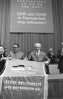 After the second world war, Korea was split into two parts: North and South Korea. North Korea under Kim Il-sung established during the Cold War diplomatic relationship with former East Germany (GDR), right after the foundation of the Democratic People's Republic of Korea on 9 September 1948.[3]