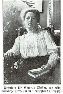 Woker was born on 16 December 1878 to "Old Catholic" theology and history professor Philipp Woker.[1] She came from a well-educated family as besides her father being a professor, her maternal grandfather taught history.[2] Woker was keen to continue her studies but her father sent her to Erfurt to learn to cook. Undeterred, Woker studied mathematics secretly at night with the brother of a fellow student. Leading a double life proved to be an exhausting and Woker fell ill with chlorosis, a form of anaemia.[1]