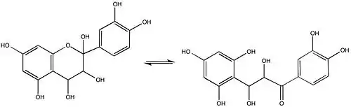 The Robinsons investigated the structure of leucoanthocyanins, colorless molecules that generate anthocyanidins and are present in most plants. Rosenheim simultaneously discovered leucoanthocyanins and he coined the term.[9] Leucoanthocyanins occur in more locations (wood, bark, nutshells, flowers, fruits) than normal anthocyanins.[10]