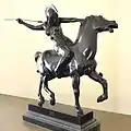 Marcello's sculpture Pythia is a representation of the priest of the oracle of Delphi, who made her prophecies under the influence of hallucinogenic gas. They were then interpreted by male priests. Well known is the prediction to the people of Athens to use wooden walls as a means to defeat the Persians. This was taken as advice to build triremes. The Persian fleet was defeated in the Battle of Salamis. On display is one of many castings of this main work of Marcello. The male pseudonym was used by the countess Adélaïde Nathalie Marie Hedwige Philippine d’Affry, who could not benefit from an education at the PAFA where Eakins allowed women to study the nude. Therefore, she used castings of her own body in creating the sculpture.