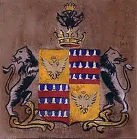 The Gherardinis of Montagliari (or Florence) are one of the most prominent historical Noble family from Tuscany, Italy. Between the 9th and 14th centuries, this family played an important role in Tuscany. Its influence was also felt in the Veneto and Emilia regions between the 16th and 18th centuries and during the Italian Risorgimento as well as in today's Italian politics and economy.[1] The family’s restless and fighting nature has aroused the curiosity of many historians of the Middle Ages. Originating from the feudal tradition, it was one of the founding families of the Republic of Florence. The family took part in Florence's political life between 1100 and 1300. In 1300 it was exiled from the city when Florence began its transformation into a Signoria. In his Divine Comedy, Dante Alighieri, who was exiled with the Gherardinis, placed the family in Paradise's V Sphere. Following its exile from Tuscany, the family joined the Great Council of Venice (Venice's Chamber of Peers)[2] and until 1800 kept some fiefs between Tuscany and Emilia Romagna. Arms of this family is a quarterly Barry of six vair and gules and imperial eagles. The oldest knightly tomb in Tuscany (in the Church of Sant'Appiano, near Barberino Val d'Elsa) belongs to this family.
