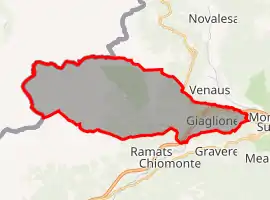 Giaglione (French: Jaillons, Piedmontese: Giajon) is a comune (municipality) in the Metropolitan City of Turin in the Italian region Piedmont, located about 60 kilometres (37 mi) west of Turin, on the border with France.