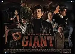 Giant (Korean: 자이언트; RR: Jaieonteu) is a 2010 South Korean television series starring Lee Beom-soo, Park Jin-hee, Joo Sang-wook, Hwang Jung-eum, Park Sang-min, and Jeong Bo-seok. It aired on SBS from 10 May to 7 December 2010 on Mondays and Tuesdays at 21:55 for 60 episodes. Giant is a sprawling period drama about three siblings' quest for revenge during the economic boom of 1970-80s Korea. Tragically separated during childhood, the three reunite as adults and set out to avenge their parents' deaths, their fates playing out against a larger tide of power, money, politics, and the growth of a city.[2][3][4][5]