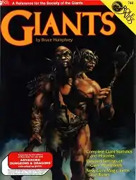 Giants is a supplement describing 12 types of giants in detail: their homes, histories, spells, magic items, pets, and allies. With five new types of giants: chaos, dwarven, forest, sea, and death. It also includes rules for giants as player characters and a campaign-setting description of Clanfast, a giants' city.[1]