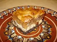 From the basic recipe, many local specialties have evolved. Prekmurska gibanica, for example, is a "fancy" multi-layered cake from Prekmurje in Slovenia, served as a dessert course on festive occasions.[9] Međimurska gibanica, from the neighbouring Međimurje region of Croatia, is a closely related but simpler and less "formal" dish consisting of four layers of fillings (prepared fresh cheese (quark), poppyseed, apple and walnut).[10] Another gibanica variety, called Prleška gibanica, is known from Prlekija to the west of the Mur River.[11]