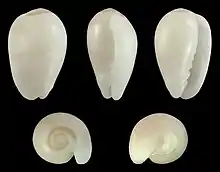 Gibberula miliaria is a species of very small sea snail, a marine gastropod mollusk or micromollusk in the family Cystiscidae.[1]