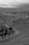 After purchasing the 400 hectares (990 acres) of land for "The Farm" in 1991,[2] Gibbs has collected major artworks by many world-renowned artists from New Zealand and overseas. Much of the artwork is commissioned and, as such, incorporates elements of the landscape into the artwork.[3] The farm also includes several exotic animals such as emus and giraffes,[1] a garage where visitors can glimpse the Gibbs Aquada through the window, and a full-scale wild west town complete with a saloon (in the installation called Grief).[4][5][6] Grief was built through the inspiration of Gibbs' architect son-in-law, Noel Lane,[6] who now cares for the property with Gibbs' daughter Amanda.[7] The town is on a private area of the farm and is not open to the public.