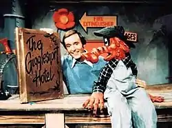 Gigglesnort Hotel is a syndicated children's television program which ran for 78 episodes between 1975 and 1978. It was hosted by Bill Jackson, previously the host of several Chicago-based children's programs including Clown Alley and The BJ and Dirty Dragon Show. The program was set, as the title implies, at an old hotel, where Jackson's role was a desk clerk.[1] The program featured many of the characters from the previous show, including Dirty Dragon, the Old Professor, Weird, Old Mother Plumtree, and several others who were created just for the program, such as the hotel's owner, Old Man Gigglesnort.[2][3][4][5]