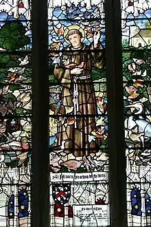 A stained glass window portraying St Francis in Selborne church commemorates Gilbert White. It was designed by Horace Hinckes and was installed in 1920.[30]