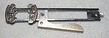 The Gilhoolie debuted in 1953.[1] Fuller applied for a United States patent on the Gilhoolie, identified as a "cam operated sliding jaw closure remover", in 1952, and the patent was granted in 1954.[2][3] Although Fuller held more than a dozen patents in the fields of dentistry and golf, the Gilhoolie patent was his only patent for a kitchen device.[4]